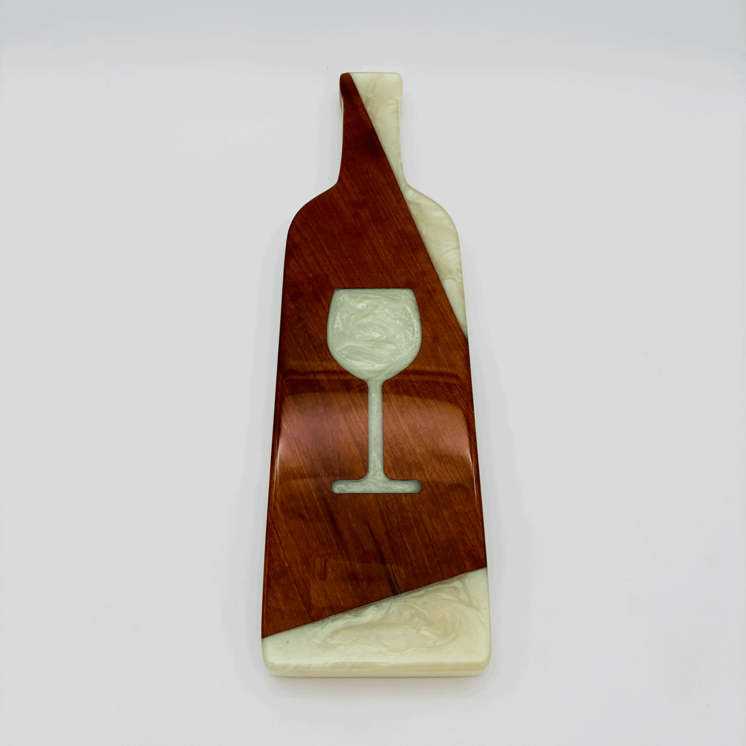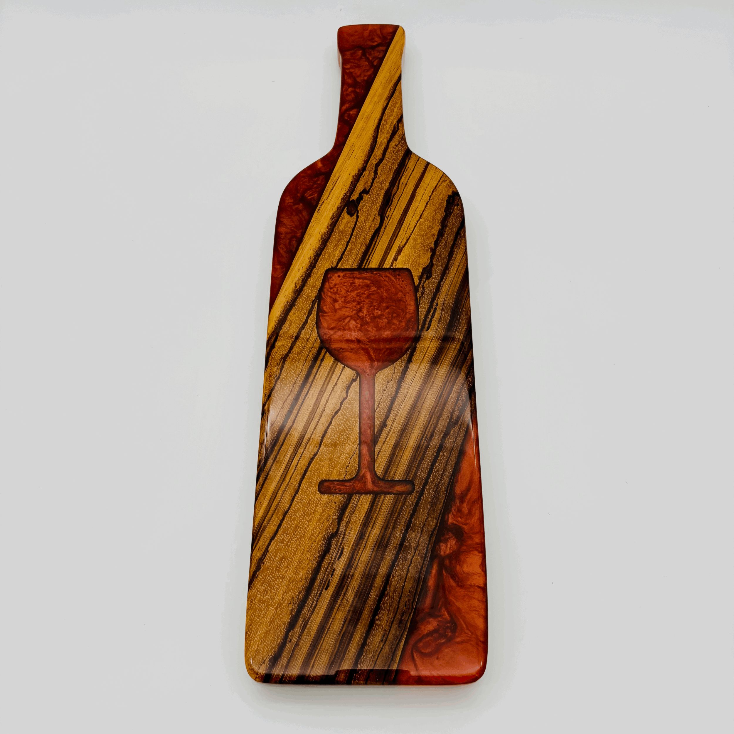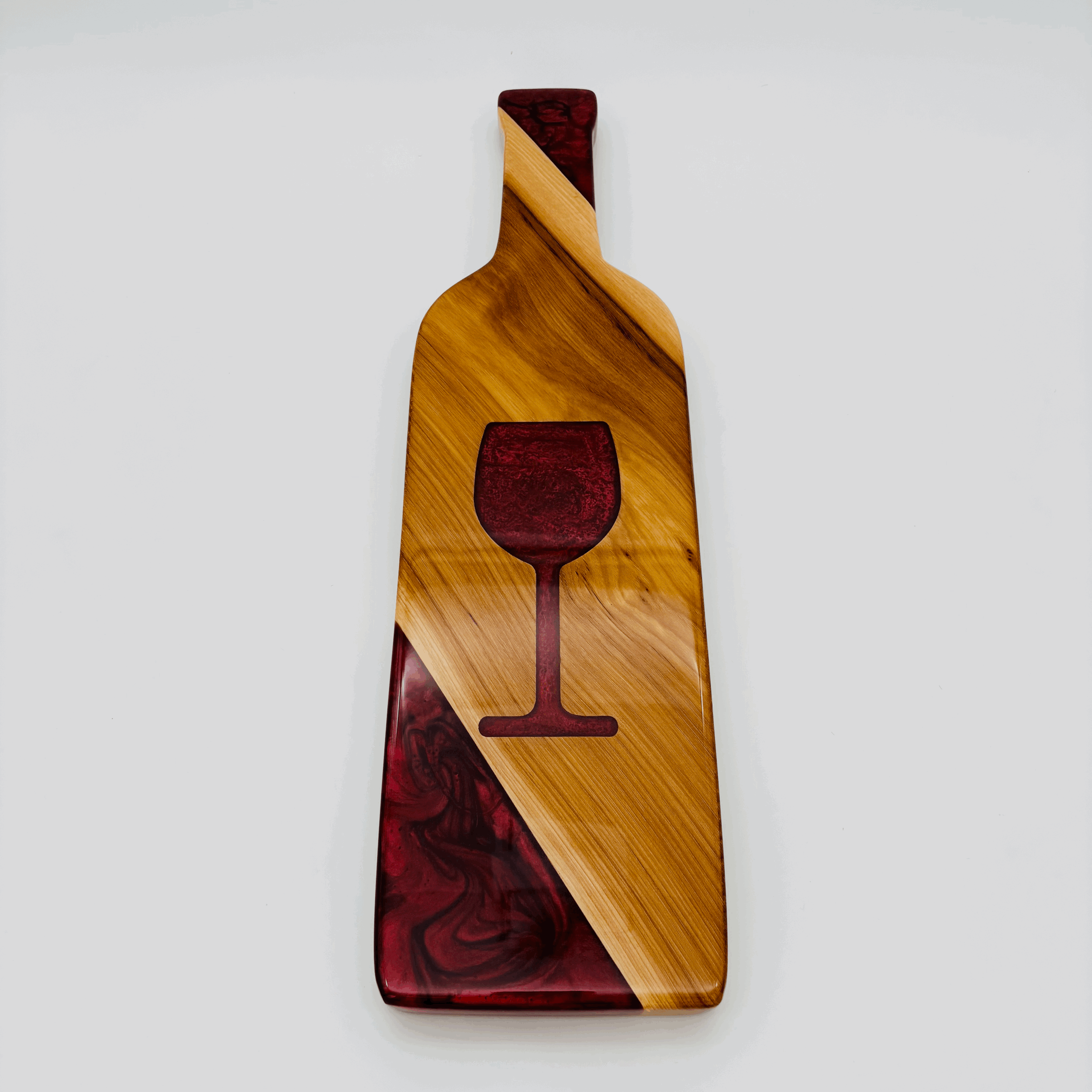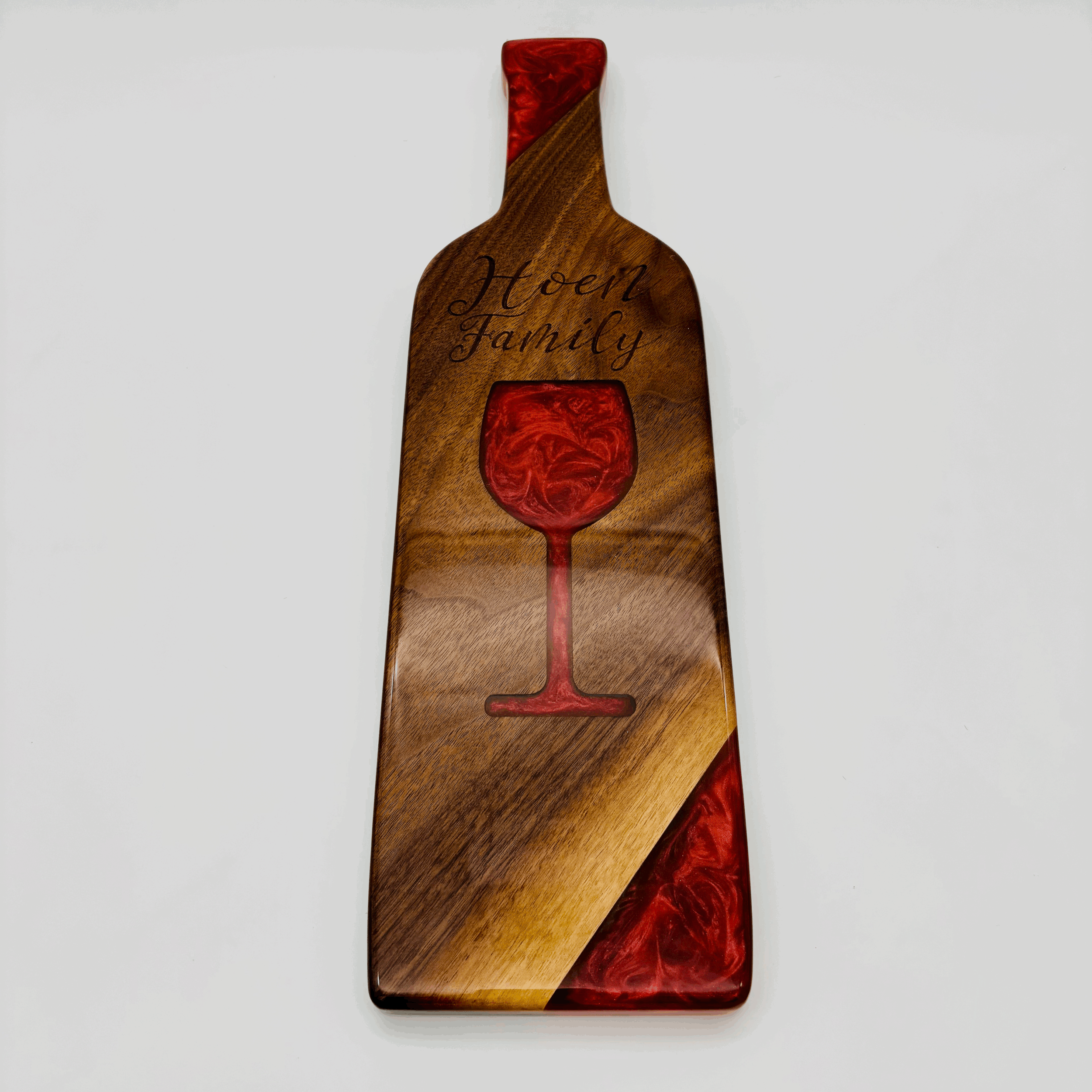 Made with wenge wood and red wine resin. Makes a great gift for birthdays, weddings, hostess, and the holidays. We can engrave a similar board for an additional charge. 19” long x 6” wide