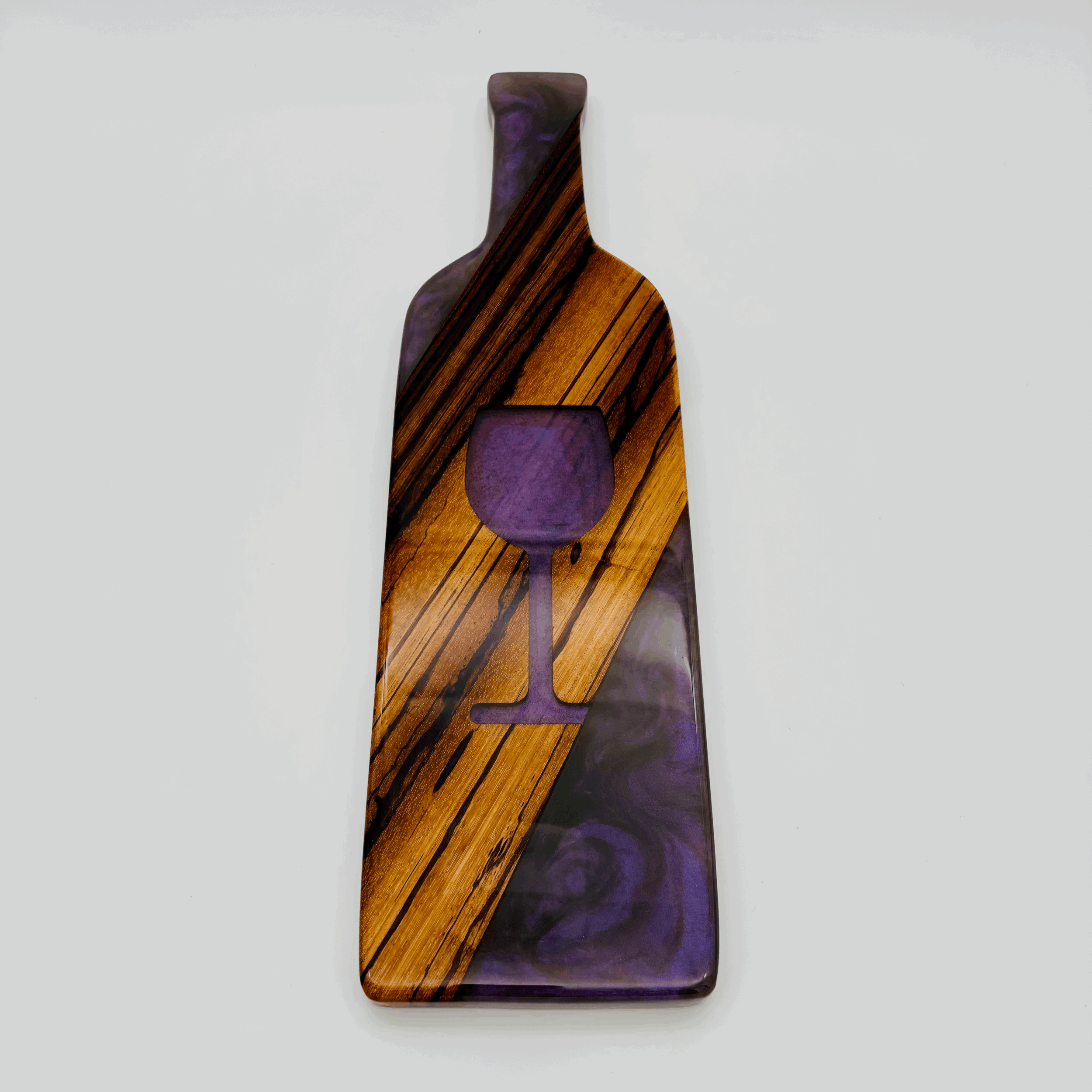 Made with zebra wood and purple resin. Makes a great gift for birthdays, weddings, hostess, and the holidays. We can engrave a similar board for an additional charge. 19” long x 6” wide