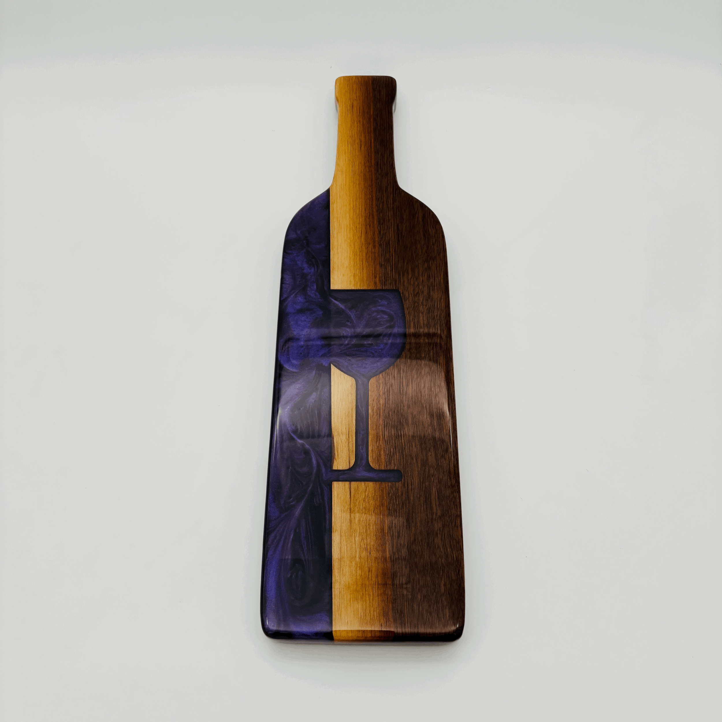 Made with walnut wood and purple resin. Makes a great gift for birthdays, weddings, hostess, and the holidays. We can engrave a similar board for an additional charge. 19” long x 6” wide