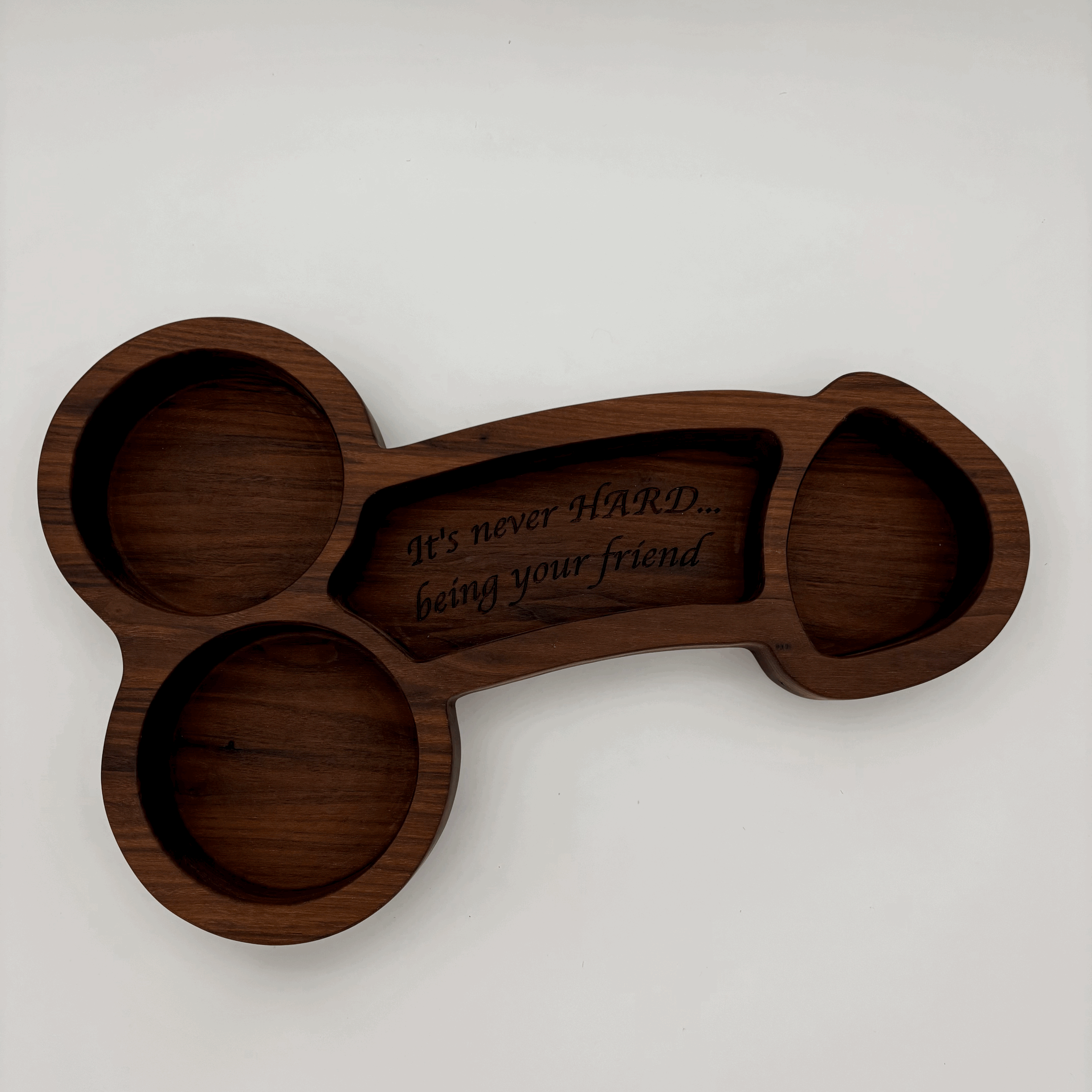 Made with walnut wood. Inscription says, “It’s never hard being your friend.” Great for cheese balls and crackers.